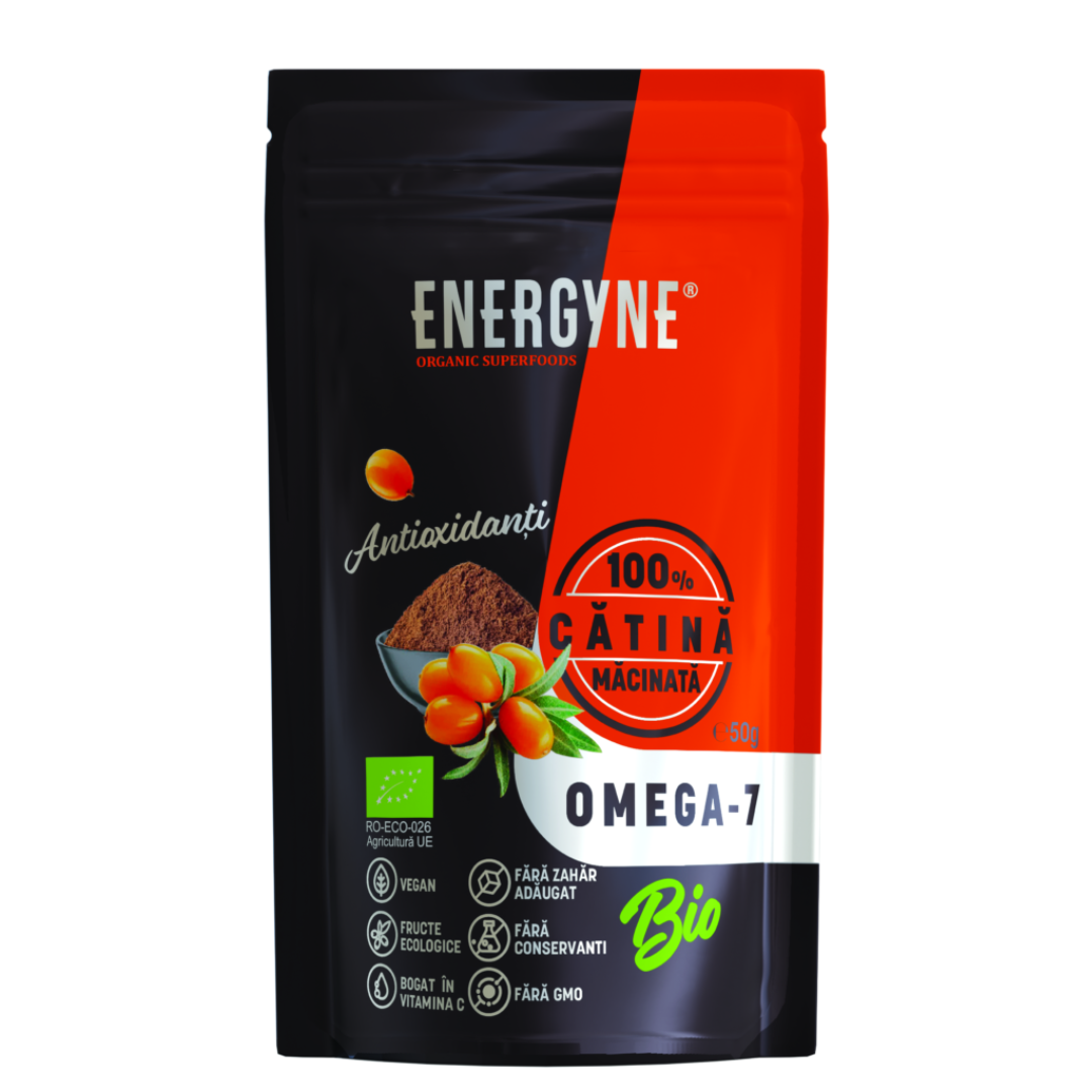 -Pulberea fină de cătină ecologică, obținută din fructe întregi, păstrează toate proprietățile nutritive ale acestui superaliment.